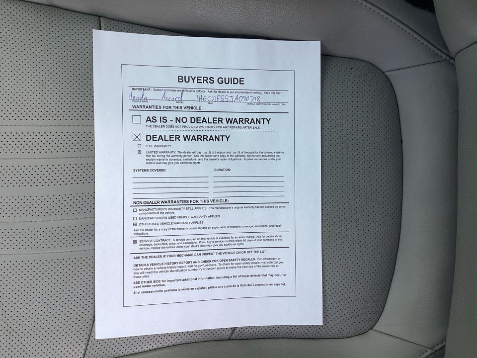 - Vehicle Name: Honda Accord Sedan