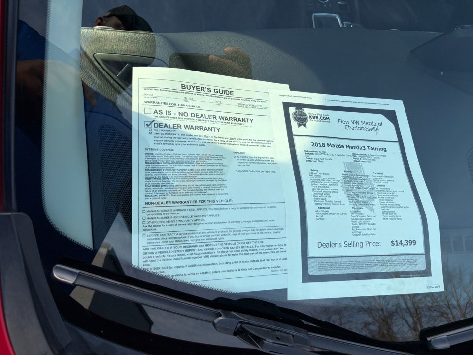 FLOW CERTIFIED! 12 MONTHS/12000 MILE WARRANTY 3 day money back guarantee and a free maintenance package on this 2018 Mazda Mazda3 Soul Red Metallic Touring! **