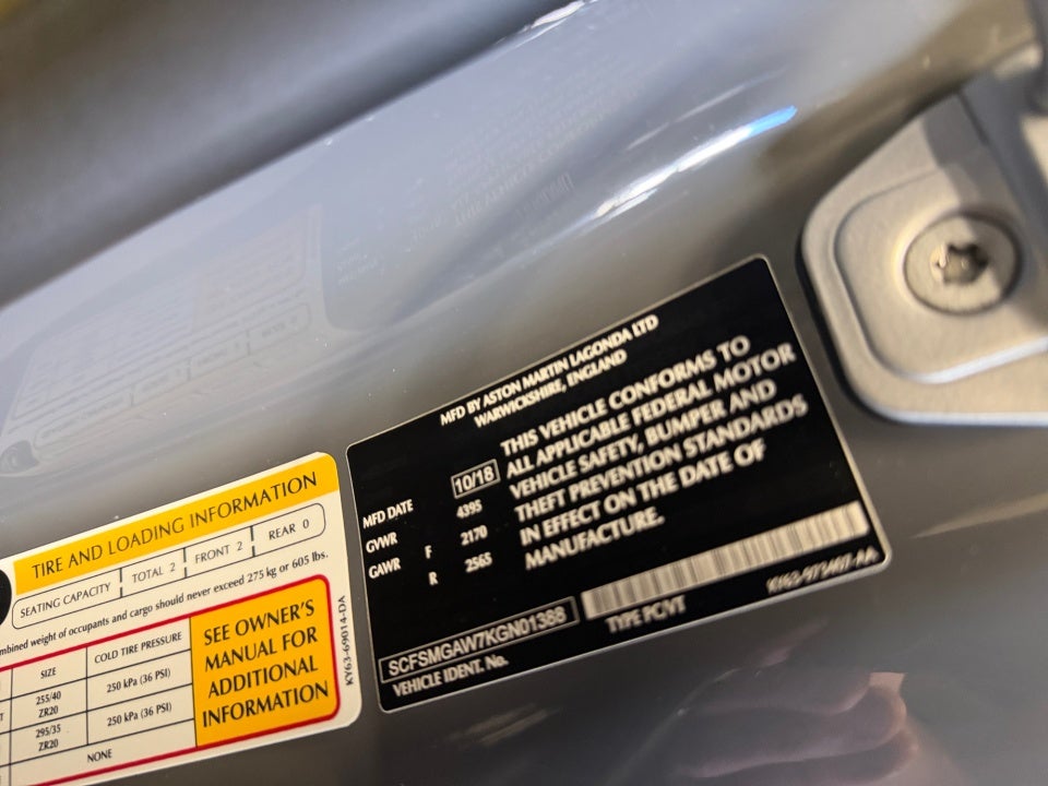 Adaptive suspension Alcantara Leather Seat Trim Navigation System Radio: Aston Martin DAB AM/FM Audio System.