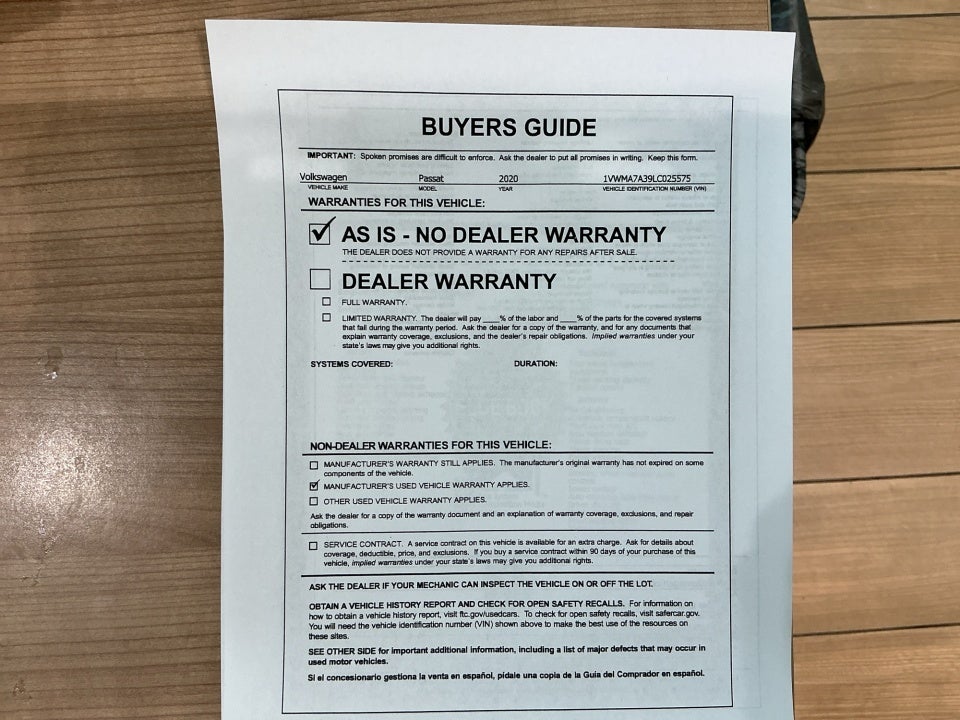 - Vehicle Name: Volkswagen Passat