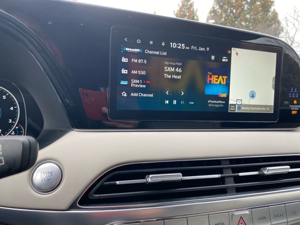 - Radio: AM/FM/MP3 Premium Audio System -inc: 10.25" display screen, Apple CarPlay and Android Auto, Bluetooth® hands-free w/wireless audio streaming, steering wheel audio and phone controls, dual front USB ports, SiriusXM, HD Radio, Blue Link connected car system, 12 speakers including subwoofer, external amplifier, Clari-Fi music restoration technology, QuantumLogic surround, navigation system, rear seat quiet mode and driver talk in-car intercom