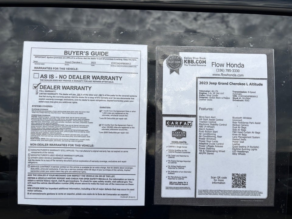FLOW CERTIFIED! 2YR/100 000 MILE WARRANTY with $300 deductible and a free maintenance package on this 2023 Jeep Grand Cherokee LSilver Zynith Altitude! **
