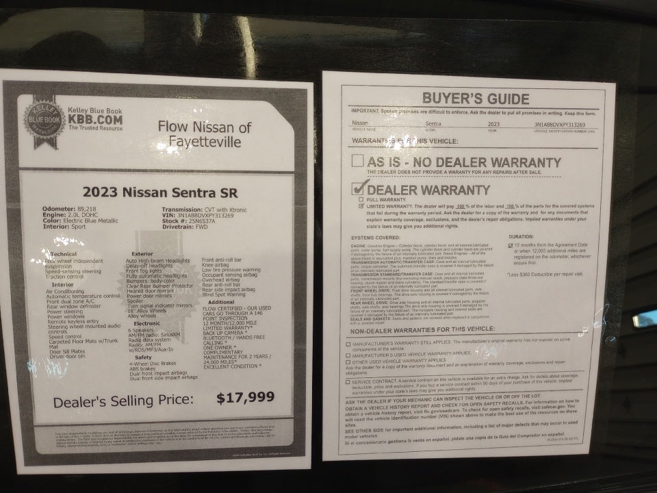 2023 Nissan Sentra SR Electric Blue Metallic SR FWD 2.0L DOHC equipped well including: Electronics Package Blind Spot Alert Lane Departure Warning High Beam Assist Nissan Connect with Apple CarPlay and Android Auto Dual Zone Climate Control Rearview Camera plus so much more.