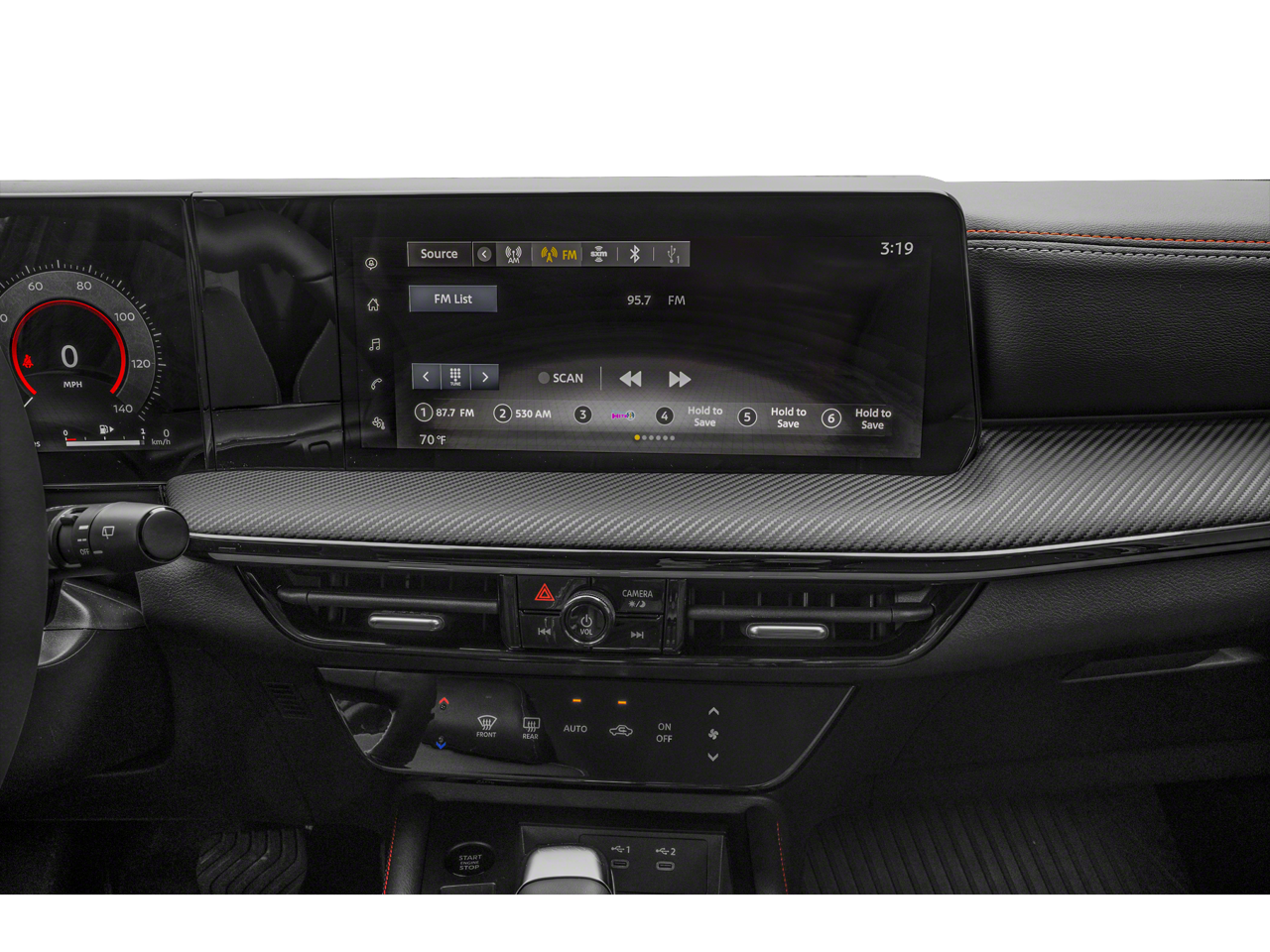 - Radio: AM/FM/SiriusXM Audio System -inc: 12.3" color touchscreen display w/6 speakers, Bluetooth® hands-free phone system, streaming audio via Bluetooth®, NissanConnect Services powered by SiriusXM featuring wireless Apple CarPlay, wireless Android Auto, Siri eyes free and hands-free text messaging assistant, audio and Bluetooth® steering wheel switches and Wi-Fi hotspot